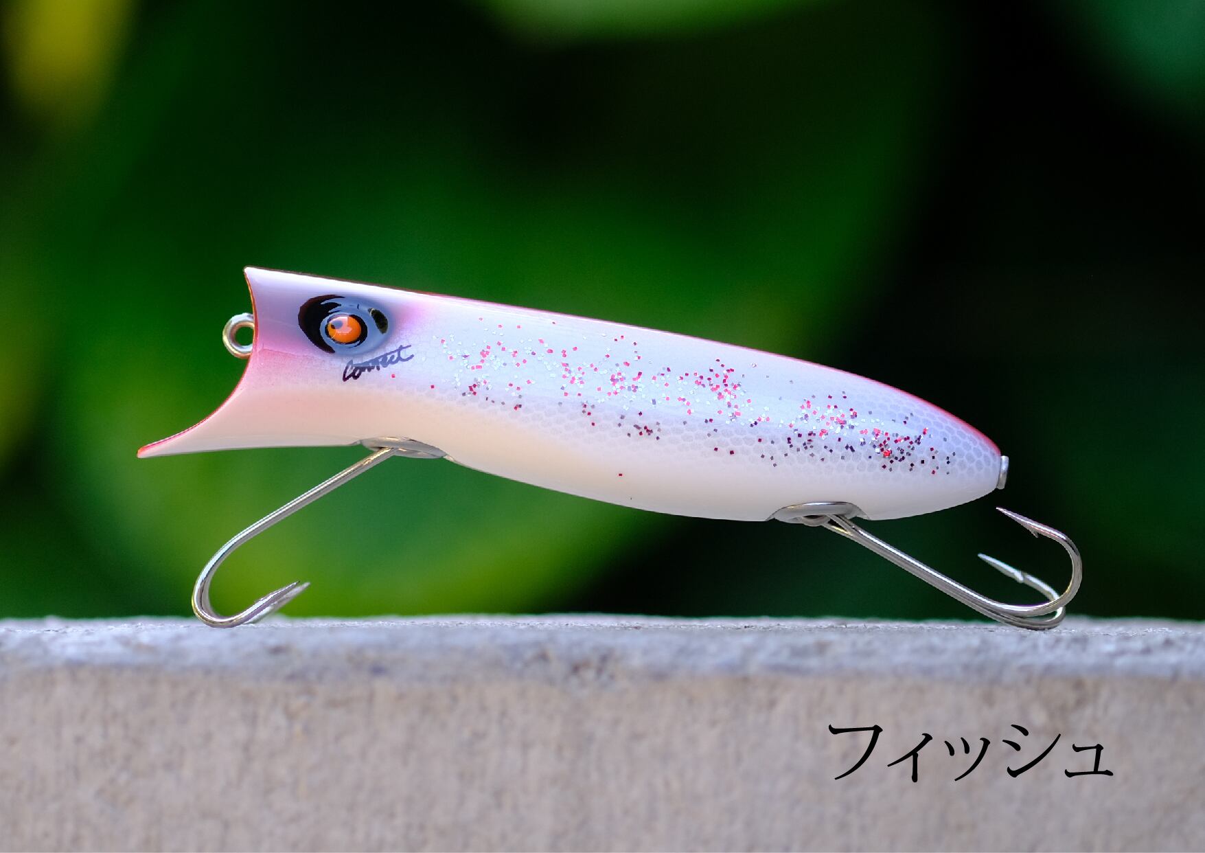 シンプルなシルエットながら、アゴ裏を削ることで鋭くダイブし、移動距離の短いアクションでアピールさせる事が出来ます。魚に対するプレッシャーを減らす意図でボディを細身に